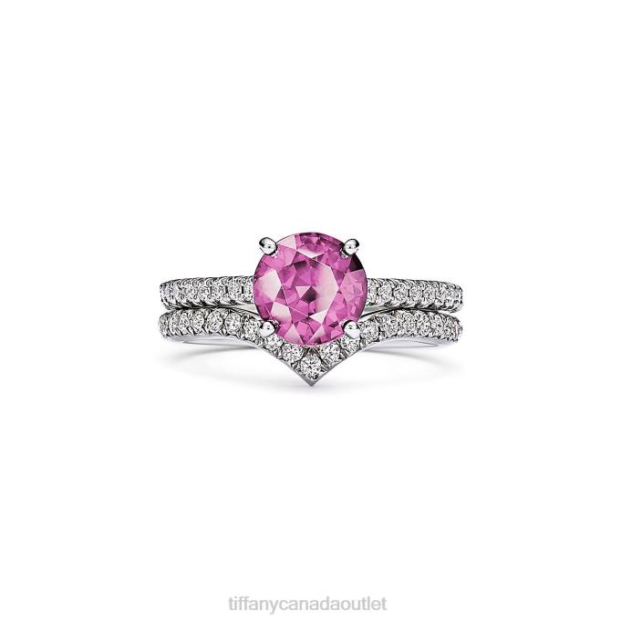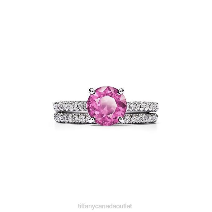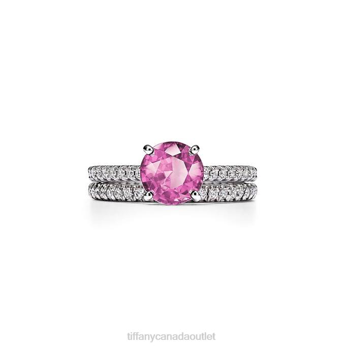 Tiffany Novo Round Pink Sapphire Ring In Platinum With Pave Diamonds