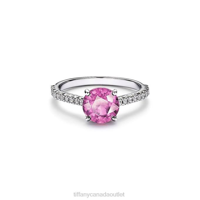 Crafted With Clean, Contemporary Lines, This Timeless Tiffany Novo Ring Is Expertly Designed With A Round Center Pink Sapphire Set Among Four Slim Prongs. Distinctly Modern With A Romantic Sensibility, This Ring Features A Slender Band Of Micro-pave-set Diamonds For Added Sparkle.
