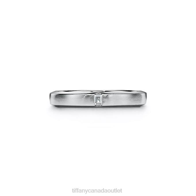 The Charles Tiffany Setting Collection Features Contemporary Band Ring Silhouettes For The Modern Couple. A Baguette Diamond Shines From The Center Of This Textured Platinum Ring With A Brushed Satin Finish.Note, Engraved Items Will Be Delivered After Father’s Day.
