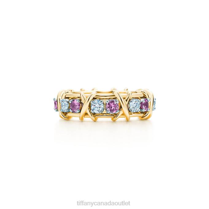 Tiffany & Co. Schlumberger Sixteen Stone Ring With Diamonds And Pink Sapphires.