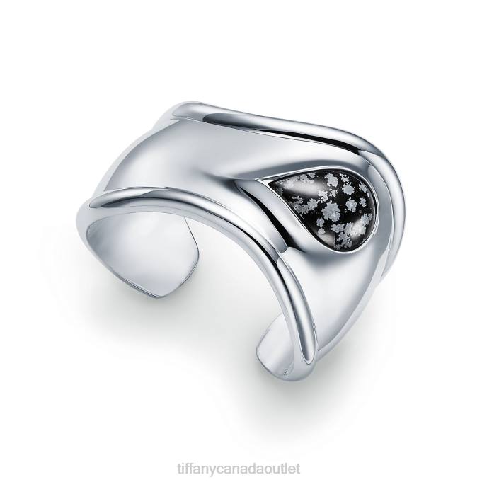 A Nod To The Sublime Beauty Found In Nature, Elsa Peretti Carved Stone Bone Cuffs Are Expertly Made By Master Craftspeople, Who Hand Carved And Inlaid Each Stone. Powerfully Feminine With An Effortless Ease, The Groundbreaking Bone Cuff Design Was First Introduced In The 1970s. A Twist On This Iconic Design, This Sterling Silver Bone Cuff Honors The Beauty Of The Hand-set Snowflake Obsidian And Reflects The Designer’s Passion For Smooth, Sculpted Surfaces.