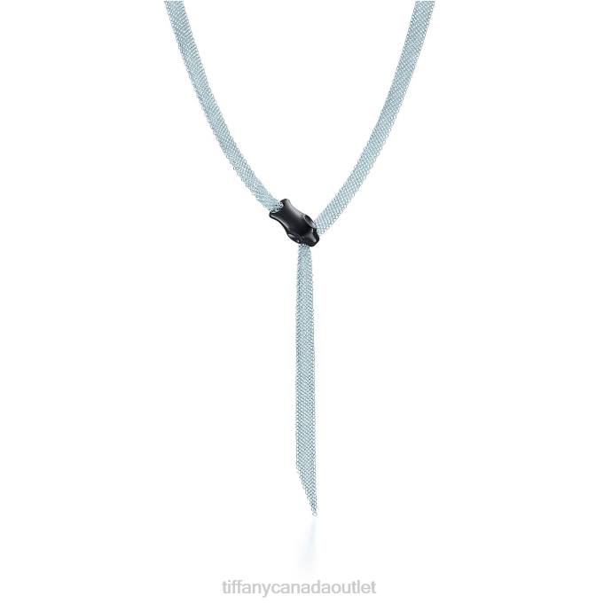 Elsa Peretti Snake Necklace In Sterling Silver Mesh With Black Jade.