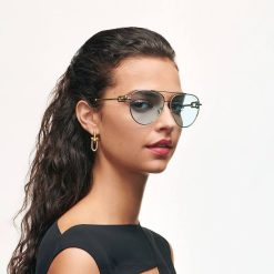 Tiffany HardWear Is Inspired By The Attitude And Energy Of New York City. Drawing From The Design Codes That Define The Jewelry Collection, These Sunglasses Feature The Signature Gauge Link As A Bold Accent. Graphic And Unexpected, The Frames Are Meticulously Crafted With Pale Gold-colored Metal And Tiffany Blue Lenses.