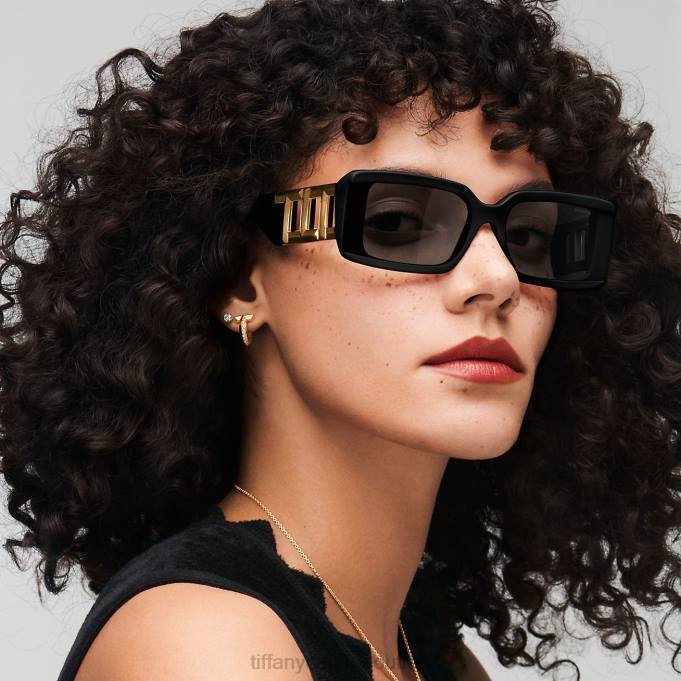 The Tiffany T Collection Is Defined By A Sleek T Motif Inspired By Our Favorite Letter. Classic Rectangular Sunglasses Get A Modern Twist With A Bold Repeating T Pattern On The Arm And Are Precisely Crafted In Black Acetate With Dark Gray Lenses.