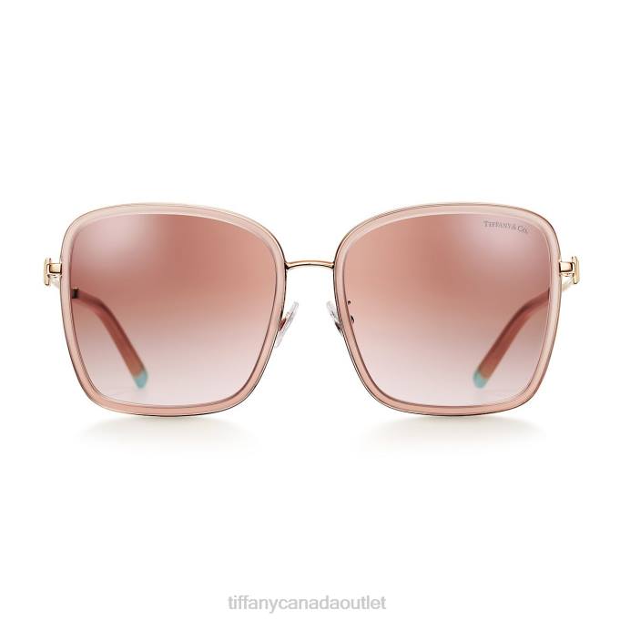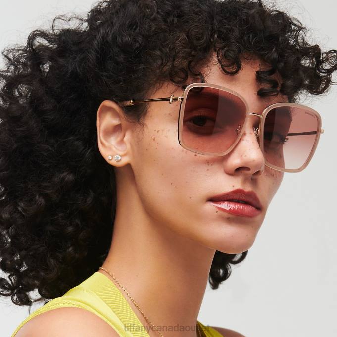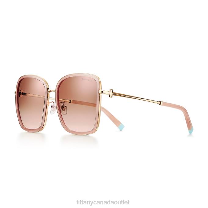 The Tiffany T Collection Is Defined By A Sleek T Motif Inspired By Our Favorite Letter. Oversized Square Sunglasses Get A Modern Twist With A Beveled T Accent In Pale Gold-colored Metal And Feature Pink Gradient Lenses With An Opal Nude Rim And A Touch Of Tiffany Blue.
