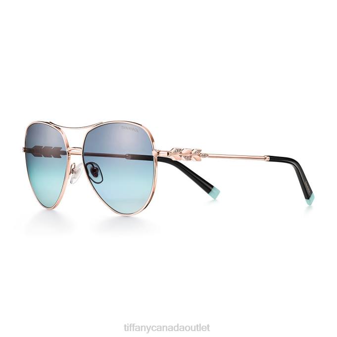 Inspired By The Beauty Of Nature, Tiffany Victoria Designs Capture The Organic Movement Of Flowers, Vines And Leaves With Meticulously Cut Diamonds. These Contemporary Pilot Sunglasses Turn The Collection’s Signature Motif Into A Statement Detail With Austrian Crystals. Sleek Frames Are Expertly Crafted With Rose Gold-colored Metal, Gradient Tiffany Blue Lenses And Tiffany Blue Accents.