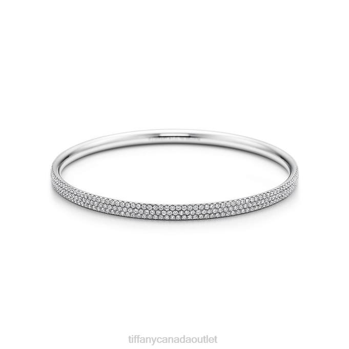 Tiffany Metro Three-row Bangle In 18k White Gold With Diamonds, Medium.