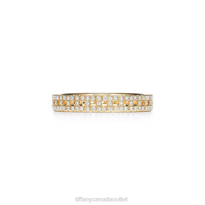 Tiffany T True Narrow Ring In 18k Gold With Pave Diamonds, 3.5 Mm Wide.