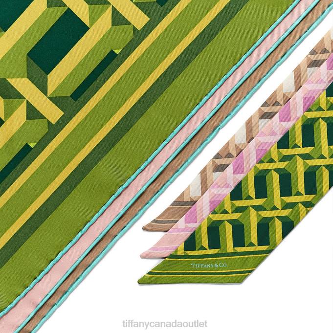 The Tiffany T Collection Is Inspired By Our Favorite Letter. A Bold Pattern Of Alternating Ts In An Emerald Green And Citrine Yellow Palette Decorates This Silk Ribbon Scarf. Pair With A Tiffany Scarf Ring Or Artfully Tie Around Your Favorite Handbag.