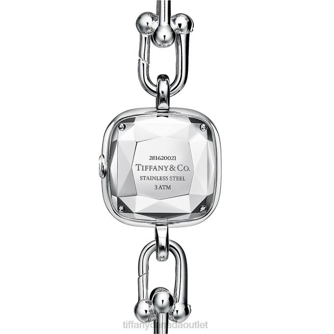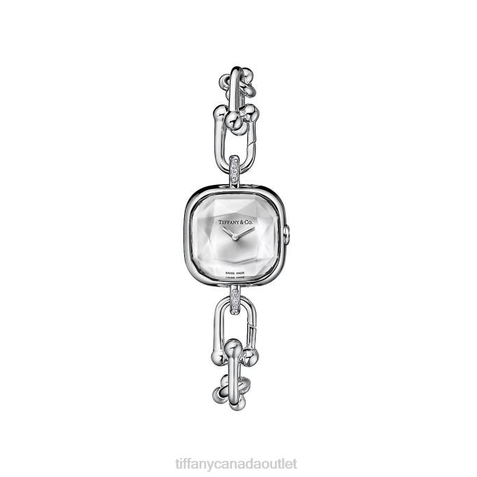 Tiffany HardWear Watches Are As Bold As They Are Refined. Handcrafted In Switzerland, Each Watch Features The Iconic Gauge Links And Brilliant Diamonds. This Sterling Silver And Steel Watch Features Diamonds And A Silver Soleil Dial. A Hidden Clasp Creates A Streamlined Design, While A Faceted Sapphire-glass Crystal Evokes The Unique Shape Of The Legendary Tiffany Diamond. It Makes A Beautiful Statement Worn On Its Own Or Layered With Tiffany HardWear Bracelets.
