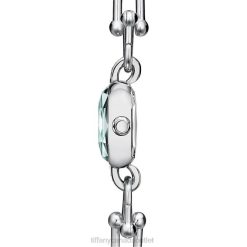 Stainless Steel Case With Diamonds And Sterling Silver Bracelet;Size Small;Fits Wrists Up To 5.75”;Tiffany Blue Dial;High-precision Swiss Quartz Movement;24.5 Mm Case Set With Eight Round Brilliant Diamonds, .07 Total Carats