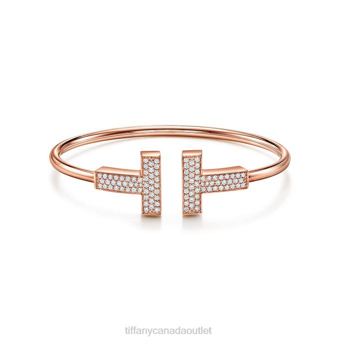 Tiffany T Wide Diamond Wire Bracelet In 18k Rose Gold, Medium.