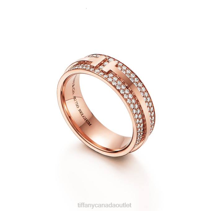 Tiffany T Wide Pave Diamond Ring In 18k Rose Gold, 5.8 Mm Wide.