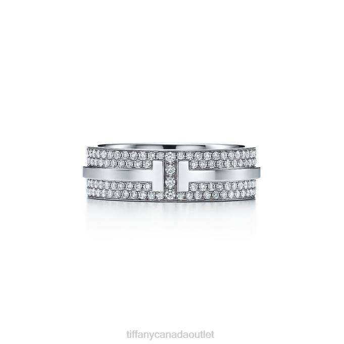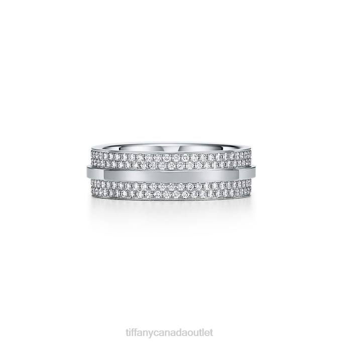 Tiffany T Wide Pave Diamond Ring In 18k White Gold, 5.8 Mm Wide.