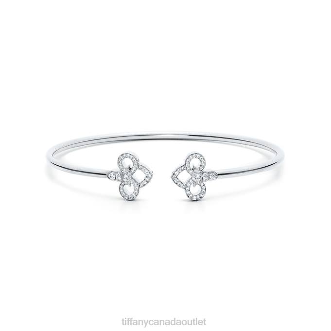 Tiffany Fleur De Lis Wire Bangle In 18k White Gold With Diamonds, Medium.