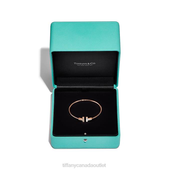 Tiffany T Wire Bracelet In Rose Gold With Diamonds And Mother-of-pearl