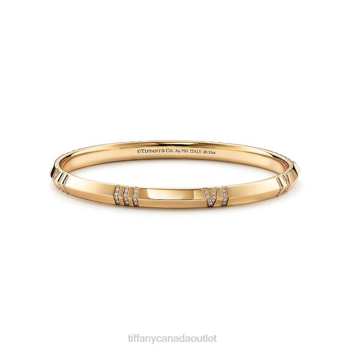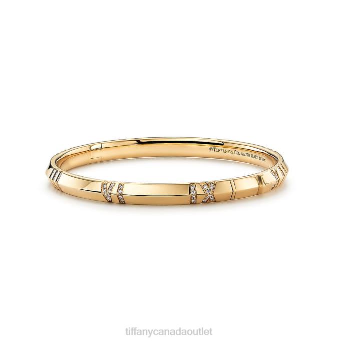 Atlas X Closed Narrow Hinged Bangle In Yellow Gold With Diamonds