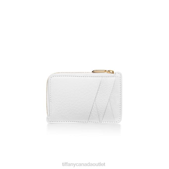 T&CO. Zip Card Case In White Leather