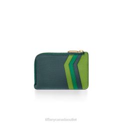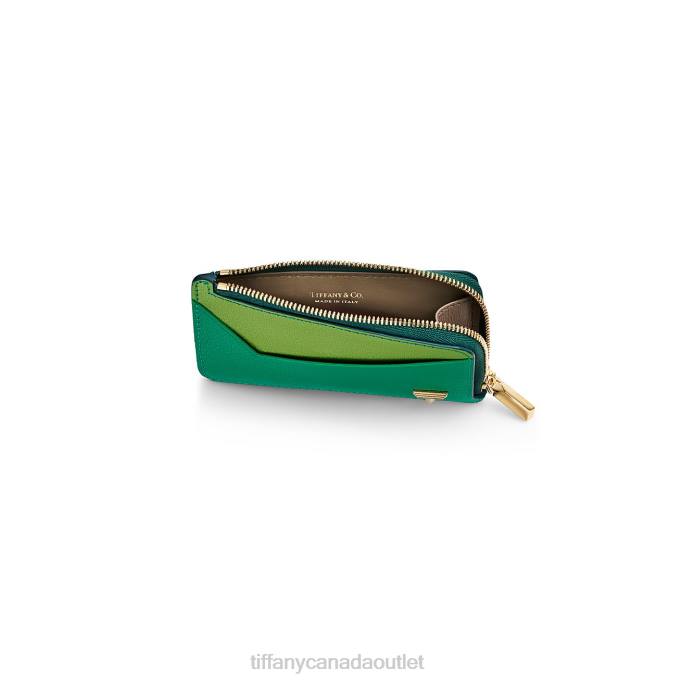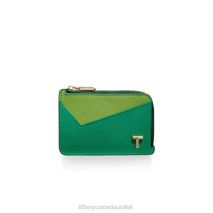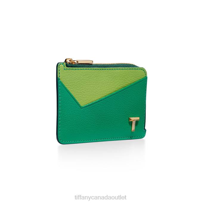 Tiffany T Zip Card Case In Emerald Green Colorblock Leather